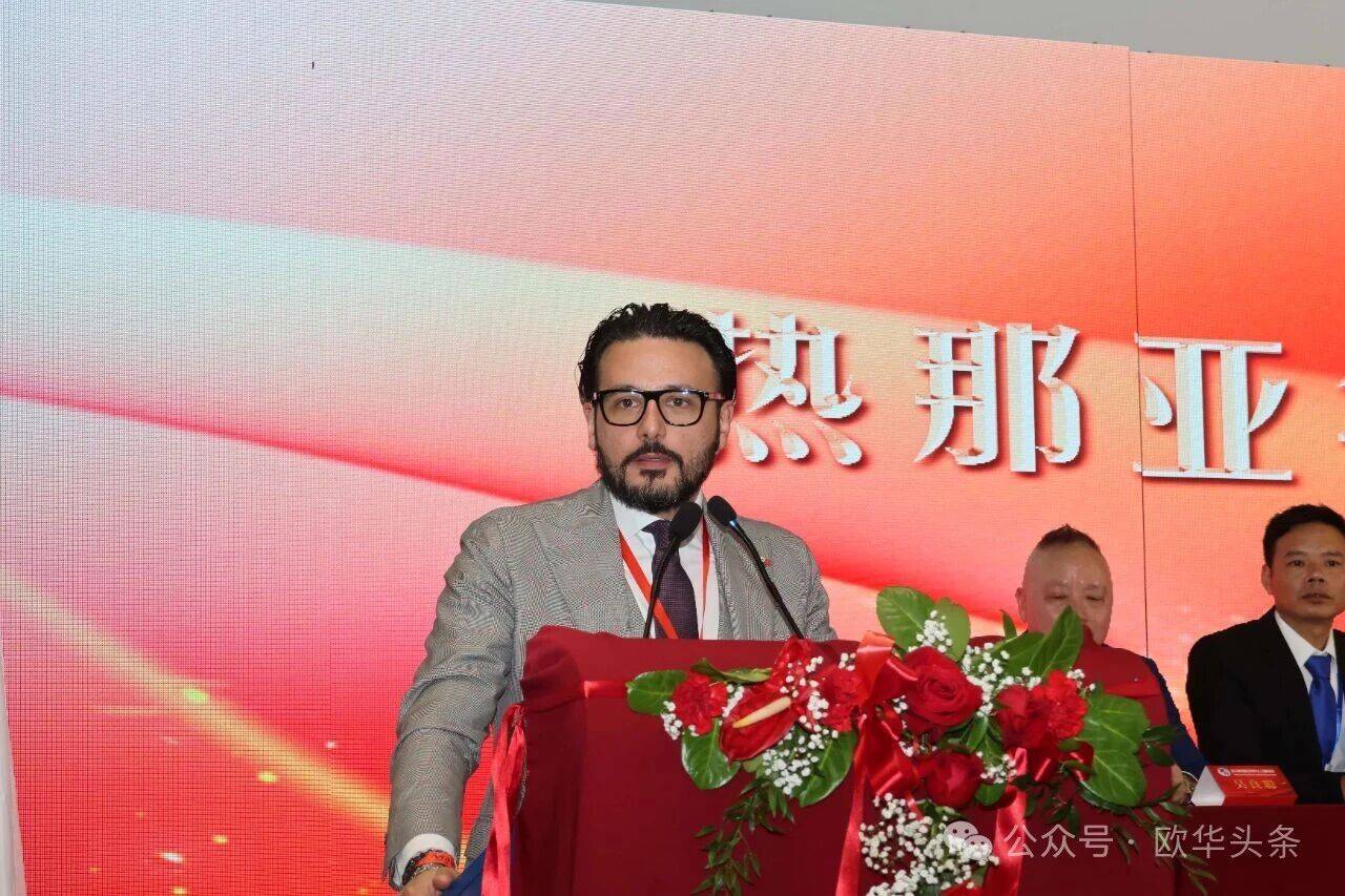 周莅淼主任代表尹琦总领事向热那亚工商联谊会成功换届大会表示热烈祝贺。他充分肯定了联谊会多年来在维护侨胞合法权益、促进中意经贸与人文交流、增进侨界团结、支持当地经济发展、弘扬中华文化以及推动中意民间友好等方面所作出的积极贡献。尤其是在疫情期间,联谊会展现出高度的责任感与凝聚力,令人深受感动与敬佩。