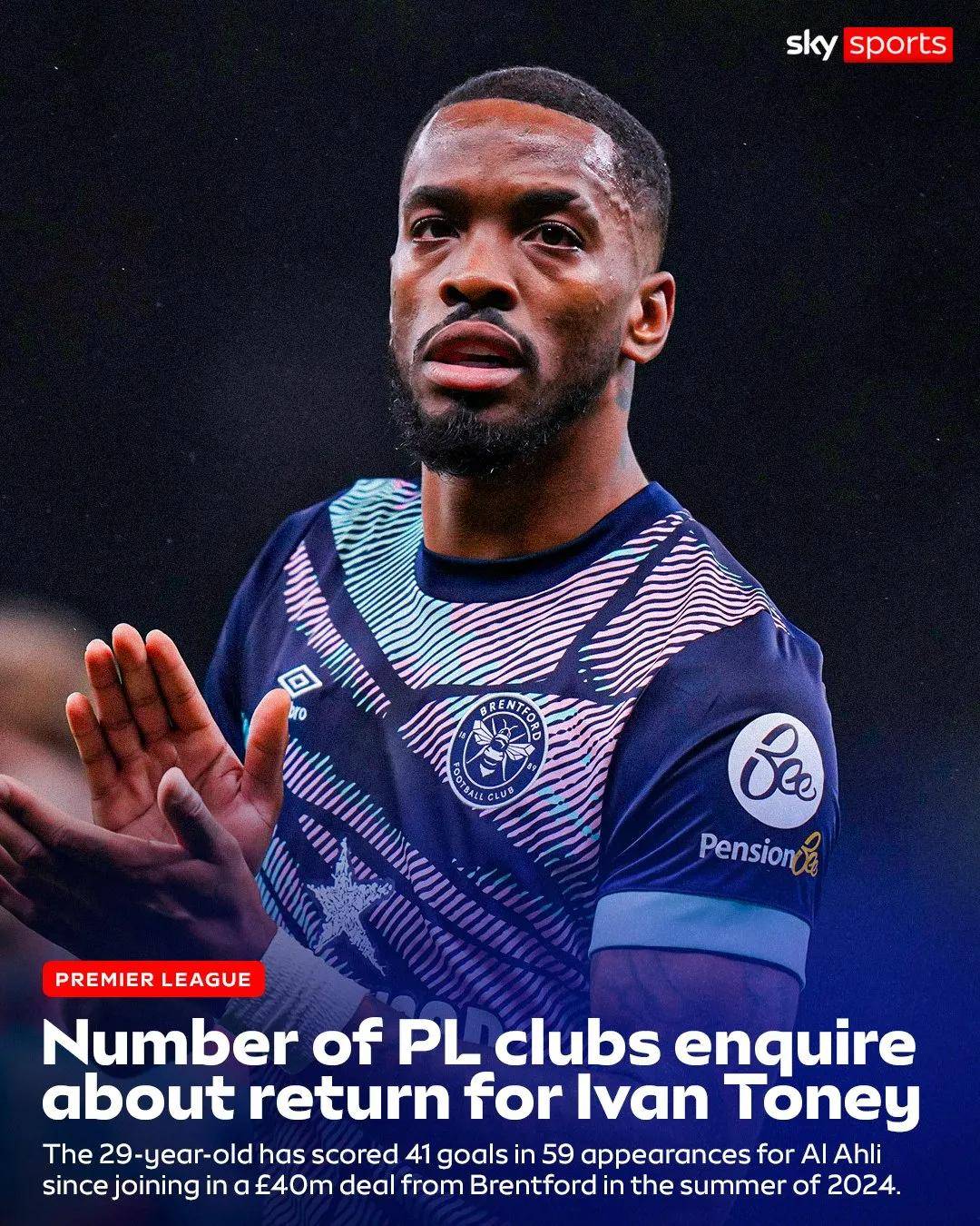 天空体育记者LT的报道显示,许多英超俱乐部正在询问是否有可能将伊万-托尼带回英格兰。这位前锋自去年夏天从布伦特福德以4000万英镑的价格加盟吉达国民以来,已经在59场比赛中打进了41球。然而,托尼回归英超的最大障碍是财政支出问题,因为他的合同将在2028年到期,而且他的工资非常高。据《电讯报》此前报道,托尼的税后周薪为40万英镑以上,算上奖金,最高可达到50万英镑,折合英超周薪可高达100万英镑。