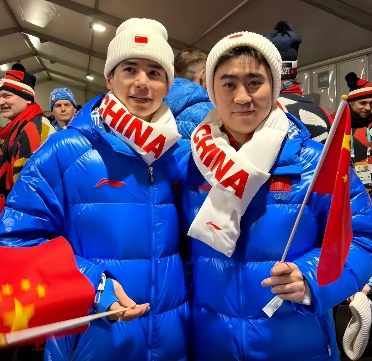 听着很玄乎对不对,但当你看到男运动员头上戴着的那个俏皮的渔夫帽,还有领队披风一掀开里面藏着的国旗图案,你就会忍不住笑出声。