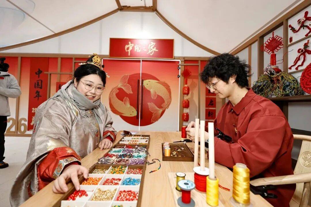一根彩绳,绾结同心。源自上古结绳记事的结绳技艺,是寄托团圆、平安的东方艺术。盘长结、吉祥结等经典结式,藏着中国人的美好期许。现场,“90后”非遗传承人手把手教学。来宾们穿绕缠编,亲手完成一枚吉祥结或平结。“结”与“吉”谐音,小小绳结既是匠心手作,更是跨越文化的情感纽带,将祝福与友谊系在指尖,传递着赛事圆满、四海同心的美好愿景。