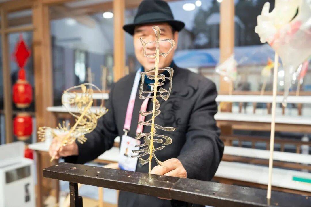 糖塑展台前总是围满人群,这项国家级非遗俗称“吹糖人”,以甜蜜与巧思唤醒童心。麦芽糖稀在传承人吹、捏、拉、塑间,转瞬化为奔腾骏马、灵动冬奥形象,香甜气息弥漫全场。嘉宾们近距离感受“一气呵成”的民间绝活,亲手尝试简易糖人制作,在指尖与舌尖的双重体验里,品味穿越时空的非遗魅力,让年味在甜蜜中传递。