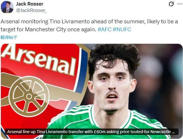 报道称,纽卡斯尔去年对利夫拉门托的要价在6000万英镑以上,不过在本赛季结束后,这名23岁右后卫的合同将只剩2年到期。